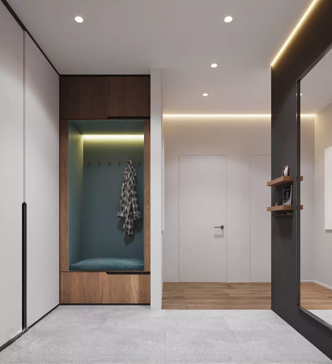 在门厅做一个收纳外出物品的设计,
