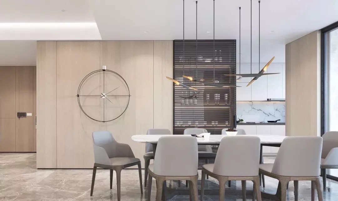 像中式、轻奢简约等比较庄重的风格,则可以选择较为深色的木质感做定制餐边柜,这样搭配出来的空间会显得更加端庄高档。